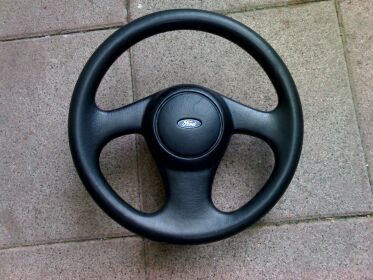 Das gezeigte Lenkrad ist Plastik - Leder ist noch eingebaut, hat aber dieselbe Dreispeichen-Form