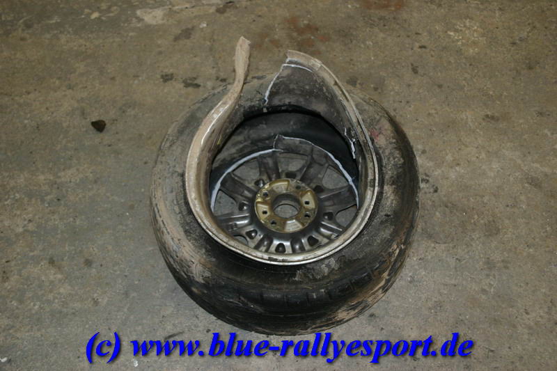 so sieht es aus, wenn sich ein Federbein durch eine Alufelge bohrt