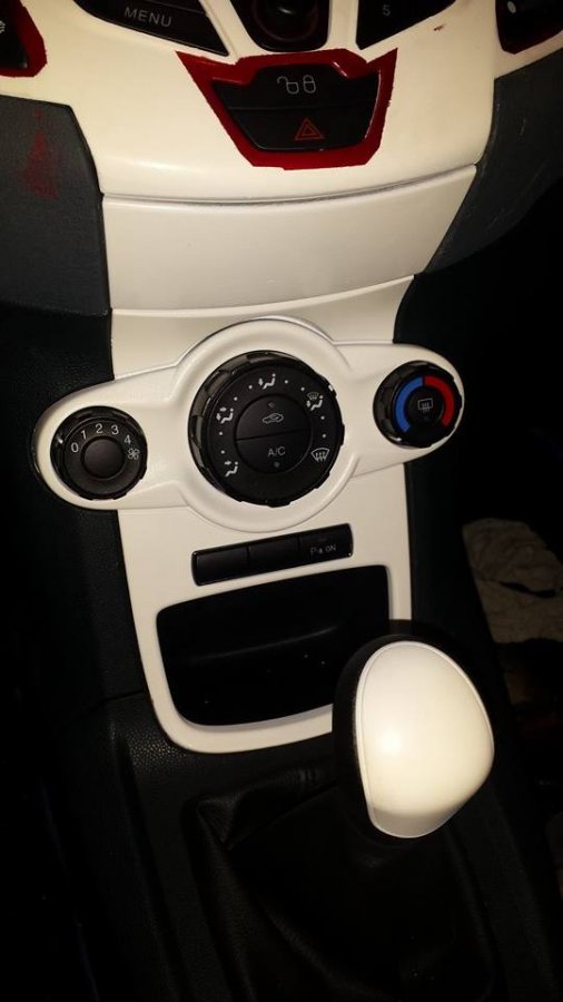 Da das irgendwie immer noch nicht so ganz ausssah wie ich's gerne hätte, wurde die Mittelkonsole und der Schaltknauf auch noch weiß lackiert