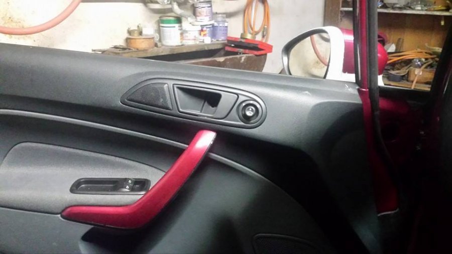 Zusätzlich noch die Griffleisten und die Spiegelumrandung in Rot und Weiß
