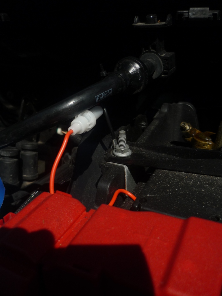 Kabel in den Schutzschlauch reingeschoben, Sicherung so, dass sie noch zugänglich ist.